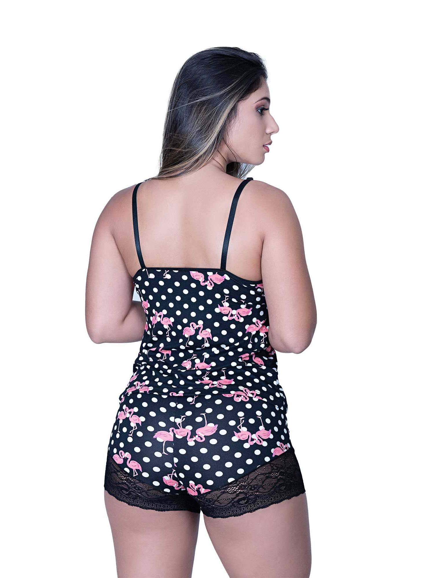 Conjunto Com Tecido estampado Detalhes Em Renda Conforto Espera Marido Ref. 9028